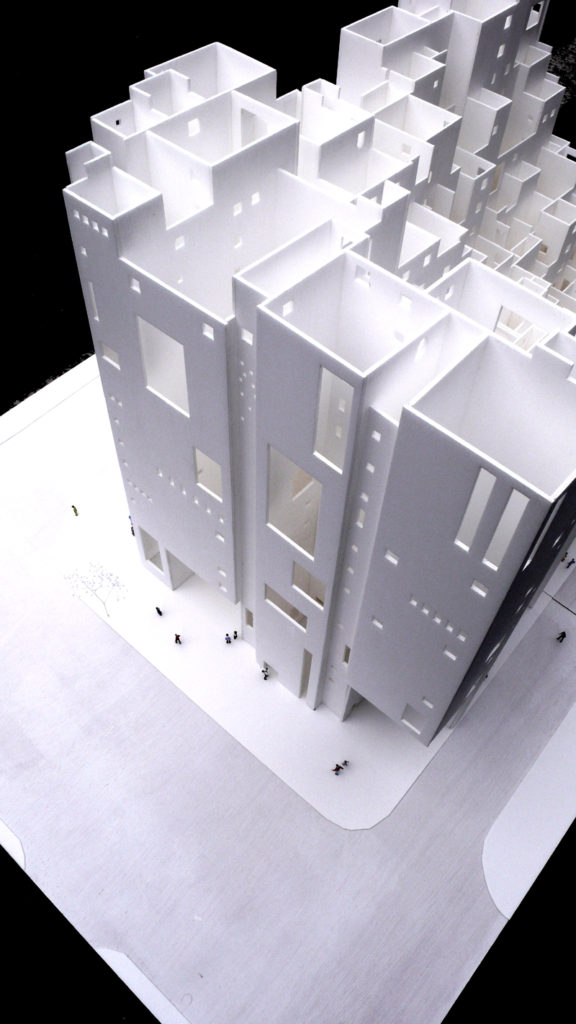 その筒の集合体の中をくり抜くように、大きさと形状がすべて異なる149戸のテナントを配しました。